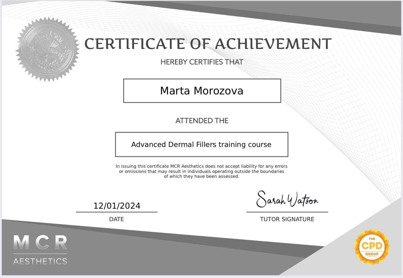 Aesthetic Nurse Marta is absolutely the very best in the business. She continually studies and trains in the latest techniques and the results speak for themselves!!